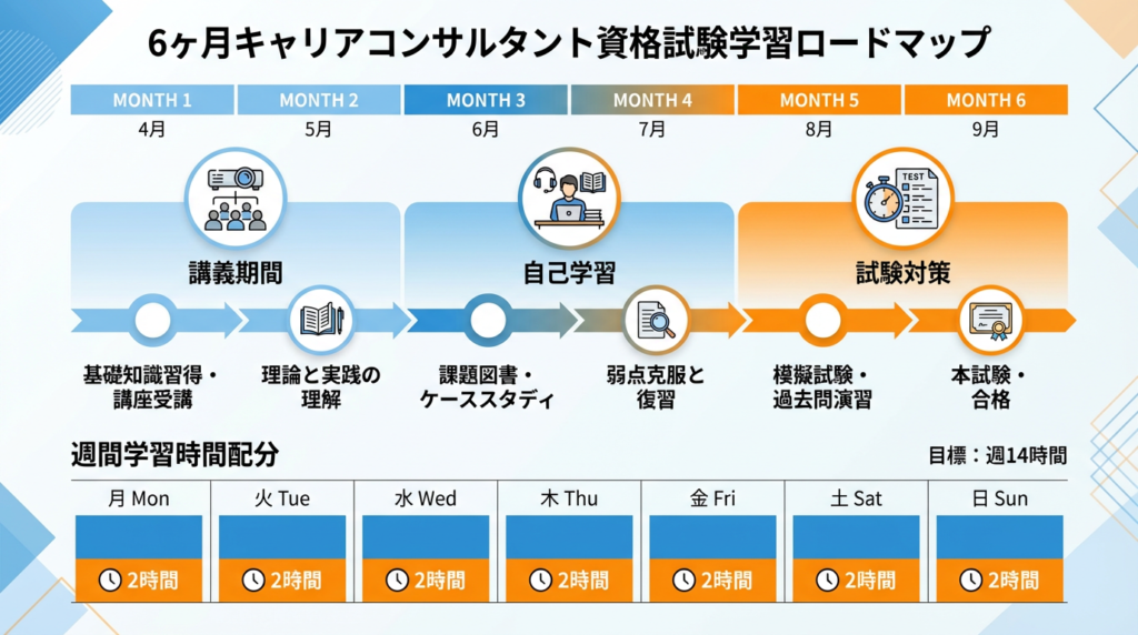 学習時間: 週14〜16時間(平日2時間×5日+土日各3時間)
