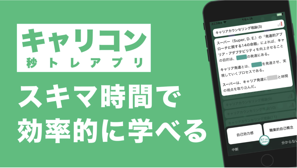 具体的には、「キャリアコンサルタント試験 秒トレアプリ」を利用し、一問一答形式で繰り返し問題を解きました。電車の中でも、立っていてもできる学習方法です。